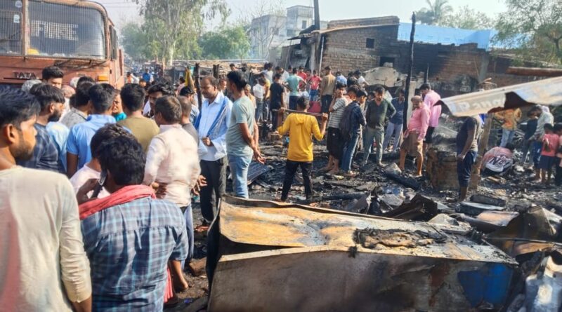 भीषण आग, पांच-छह दुकानें हुई जलकर राख