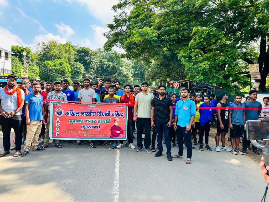 भारतीय विद्यार्थी परिषद् दुमका नगर इकाई द्वारा राष्ट्रीय खेल दिवस के अवसर पर भारत एवं विश्व हॉकी के सर्वश्रेष्ठ खिलाड़ी मेजर ध्यानचंद के जयंती पर अभाविप के खेलो भारत अभियान के माध्यम से कॉलेज अध्यक्ष अमन कुमार साह के नेतृत्व में मैराथन (दौड़) कार्यक्रम का आयोजन किया गया जो संताल परगना महाविद्यालय से लेकर शिव पहाड़ चौक फिर शिव पहाड़ चौक से संथाल परगना महाविद्यालय तक लगभग 100 छात्र/ छत्राओं का दौड़ कराया गया जिसमें 3 छात्र और 3 छात्रा ने प्रथम स्थान , द्वितीय स्थान ,तृतीय स्थान प्राप्त किया जो निम्न प्रकार है –