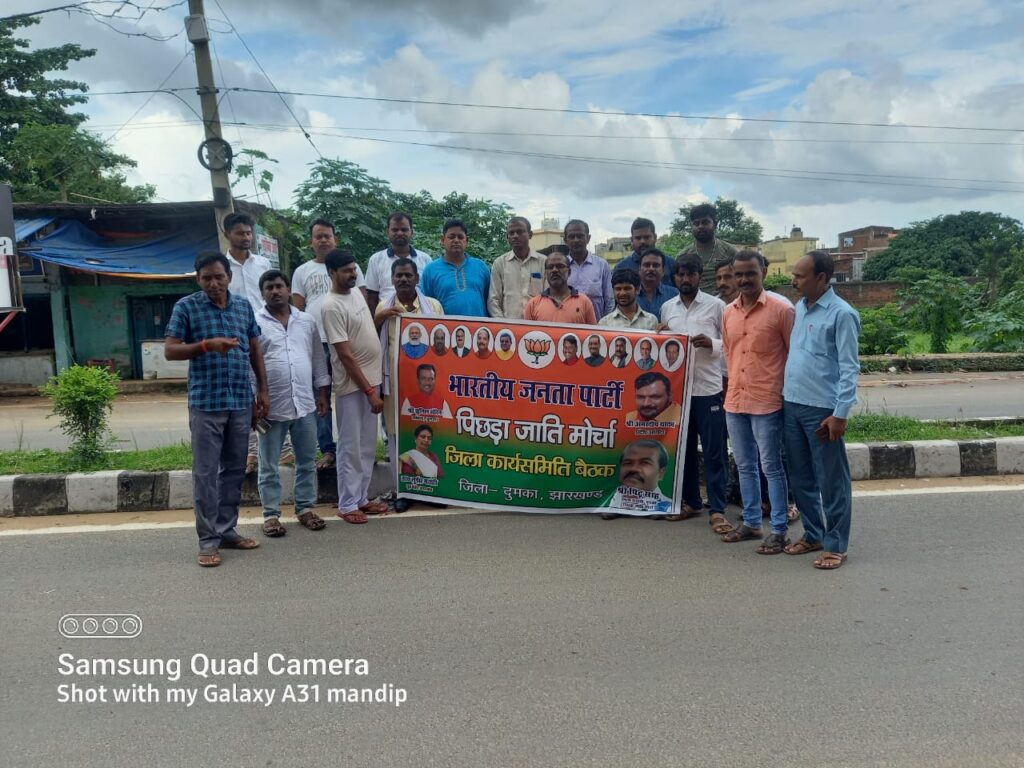 भाजपा कार्यालय में पिछड़ी जाति मोर्चा की एक संगठनात्मक बैठक जिला अध्यक्ष पिंटू शाह की अध्यक्षता में हुई इस बैठक में मुख्य अतिथि के रूप में पलामू से जिला प्रभारी पप्पू पंडित जी उपस्थित हए। उन्होंने मोर्चा के संगठन विस्तार एवं कार्यक्रमों को लेकर विस्तार से जानकारी ली इस बैठक में सभी जिला पदाधिकारी एवं मंडल अध्यक्ष उपस्थित थे यह बैठक जिला पदाधिकारियों के प्रवास मंडल अध्यक्षों के मंडलों में कार्यक्रमों को लेकर चर्चा की गई साथ ही साथ 17 अट्ठारह 19 तारीख को जमशेदपुर में होने वाले प्रदेश कार्यसमिति की बैठक को लेकर चर्चा की गई इस बैठक में जिला प्रभारी पप्पू पंडित ने कहा की पिछड़ा जाति मोर्चा भारतीय जनता पार्टी का एक बहुत ही महत्वपूर्ण मोर्चा है और हमें इस मोर्चा को मजबूत कर पिछड़ा जाति के लिए 27% आरक्षण की मांग को लेकर आंदोलन करते रहना चाहिए साथी जिला पदाधिकारियों को विभिन्न मंडलों का प्रभारी नियुक्त किया गया और निरंतर प्रवाह हेतु जाने को निर्देश दिया गया इस बैठक में जिला मंत्री जामताड़ा जिला प्रभारी लक्ष्मण पंडित जिला उपाध्यक्ष दिनेश सिंह जिला मंत्री अशोक कुमार मुकेश कुमार अजय सह कंचन मंडल केदार यादव प्रकाश दीवर नरेश कुमार सुशांत दास संतोष मल्ला प्रेम कुमार छोटेलाल मंडल शंभू कुमार रितेश मंडल गुनाधर मांझी सनत मुसुक मोहन रावत पवन कुमार प्रीतम कुमार मोहन मांझी के साथ-साथ कई कार्यकर्ता उपस्थित