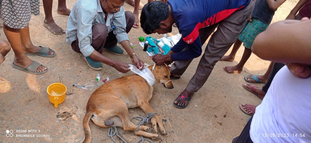 सदर प्रखंड के पारसिमला पंचायत के पारसिमला तामुली टोला के एक पालतू कुत्ता को किसी अज्ञात ने व्यक्ति ने तीर मारकर गंभीर रुप से घायल कर दिया है। गांव के तामुलीटोला के दयामय भूंई रामकृष्ण पाल, सुभाष मुदि ,रवि दत, चंद्र शेखर मुदि,विशाल पाल,अभीजीत पाल गंभीर रूप से घायल कुत्ता को इलाज के लिए एक टेम्पो भाड़ा किया जैसे कुत्ता को टेमपू में चढ़ाया बार बार टेमपू से कूदकर भाग जाता अंत में युवकों ने इसकी सूचना इंडियन पंच के पत्रकार सुधीर कुमार को इसकी जानकारी दिया पत्रकार ने मामले को गंभीरता से लेते हुए इसकी सूचना दुमका के पशु चिकित्सक पीयूष मिंज को घटना की सूचना दिया डाक्टर पीयूष मिंज अपने विभागीय टीम के साथ पारसिमला तामुली टोला पहूंच कर गंभीर रुप से घायल कुत्ता का गर्दन आपरेशन कर तीर को निकाल कर कुत्ता को मरने से बचा लिया साथ ही दवा,, इंजैक्शन भी दिया है पूरा गांव डा0 पीयूष मिंज का सराहना कर रहा है। लोगो ने बताया आज अगर सही समय पर डा0 पीयूष मिंज न पहूंचता तो घायल पालतू कुत्ता का जान भी जा सकता था। पूरी टीम के साथ डाक्टर पीयूष मिंज पारसिमला पहूंच कर गंभीर रूप से घायल पालतू कुत्ता के गर्दन पर लगे तीर को सफल आपरेशन कर निकाल कर कुत्ता को मरने से बचा लिया है पूरा गांव डाक्टर पीयूष मिंज का सराहना कर रहा है।