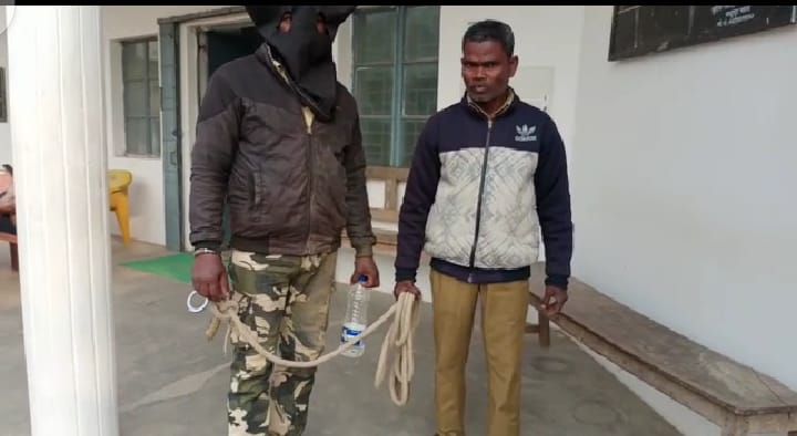 मधुपुर। थाना क्षेत्र के पसिया में मंगलवार की रात करीब 11:00 बजे तिलक समारोह में रंगदारी की मांग करने व मारपीट के आरोपी मुन्ना शेख को पुलिस ने गिरफ्तार किया है।घटना को लेकर चंचला देवी ने पुलिस को बताया कि उसके पुत्र के तिलक समारोह में उक्त आरोपी आए और तलवार का भय दिखाकर रंगदारी की मांग करने लगे विरोध करने पर आरोपी द्वारा मारपीट की घटना को अंजाम दिया गया। पुलिस ने चंचला देवी के लिखित बयान पर प्राथमिकी दर्ज कर बुधवार को आरोपी का अनुमंडलीय अस्पताल में कोविड व समान्य मेडिकल जांच कराया।पुलिस ने बताया कि आरोपी के पास से तलवार बरामद किया गया है। पुलिस मामले की छानबीन कर रही है।पुलिस ने आरोपी को न्यायालय में प्रस्तुत किया जहां से उसे न्यायिक हिरासत में भेज दिया गया।
