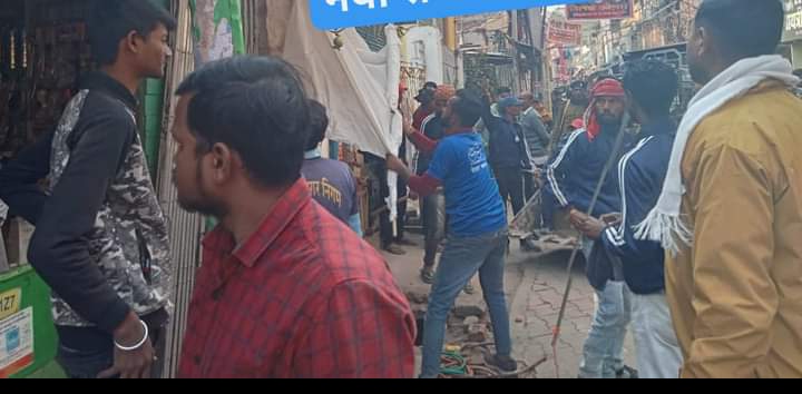 देवघर। बाबा मंदिर के समीप बीते दिनों मंगल पंसारी की दुकान में आगजनी की घटना के बाद देवघर नगर निगम प्रशासन द्वारा चलाया गया अतिक्रमण हटाओ अभियान बुधवार को दुसरे दिन भी जारी रहा। आज अभियान का नेतृत्व नगर निगम के नगर प्रबंधक प्रकाश कुमार मिश्रा कर रहे थे। उपायुक्त मंजूनाथ भजंत्री के सख्त निर्देश के बाद नगर निगम प्रशासन द्वारा बसंतपंचमी मेला व महाशिवरात्रि के मौके पर श्रद्धालुओं को सुगम तरीके से जलार्पण कराने के उद्देश्य से भी अतिक्रमण हटाओ अभियान चलाया गया। नगर निगम की ओर से आज टावर चौक से शिक्षा सभा चौक तक अतिक्रमण हटाने का काम किया गया। साथ ही दुकानदारों को सख्त निर्देश दिया गया है कि रास्ते में अतिक्रमण न करें। इस बाबत नगर आयुक्त सह प्रशासक शैलेंद्र कुमार लाल समय समय पर अतिक्रमण हटाने को लेकर कड़ा रुख अपनाते रहे हैं। नगर आयुक्त के सख्त निर्देश के बाद बाबा मंदिर के आस-पास के इलाकों से अतिक्रमण हटाओ अभियान चलाया जा रहा है। नगर प्रबंधक प्रकाश मिश्रा ने बताया कि नगर निगम की ओर से इस प्रकार का अभियान फिलहाल लगातार चलाया जाएगा। फिलहाल बाबा मंदिर के आसपास अतिक्रमण हटाया जा रहा है। जिसके बाद देवघर के सभी मार्केट से अतिक्रमण हटाने का काम किया जाएगा। आज अतिक्रमण हटाने के नगर प्रबंधक के अलावा दंडाधिकारी के रूप में सीओ मोतीलाल मुर्मू सहित नगर निगम के अन्य अधिकारी, कर्मी व पुलिस बल के जवान मौजूद थे।