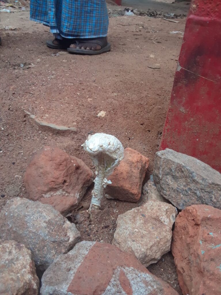 यह मशरूम लगभग 8 से 9 इंच लंबा है एवं हूबहू नाग का आकार में बना हुआ है। हिन्दू समुदाय के लोगांे ने नाग देवता मानकर मशरूम पर सिंदूर लगाकर लाल रंग का कपड़ा मशरूम के समीप रखकर फूल माला एवं अगरबत्ती जलाकर पूजा पाठ किया है। लोगो ने दक्षिणा के रूप में रुपये दान करना शुरू कर दिया है। यह खबर प्रखंड में चर्चा का बाजार बना हुआ है।
