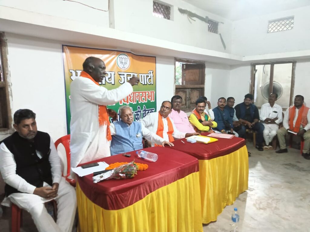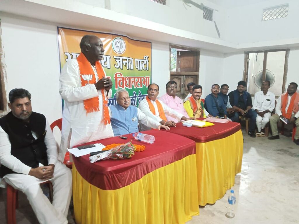 जामा प्रखंड अंतर्गत माहरो चौक स्थित भाजपा कार्यकर्ता हिरालाल मंडल के आवास पर जामा विधनसभा भाजपा चुनाव संचालन समिति का बैठक जिलाध्यक्ष गौरवकांत के अध्यक्षता में आयोजित कि गई। जिसमें मुख्य से झारखंड प्रदेश प्रभारी लक्ष्मीकांत वाजपेयी एवं भाजपा प्रत्याशी सुरेश मुर्मू उपस्थित थे। बैठक में समिति को संबोधित करते हुए प्रभारी लक्ष्मीकांत वाजपेयी ने कहा कि सभी कार्यकर्ताओं ईमानदारी से लगन और मेहनत के साथ चुनाव मैदान में लग जाय। उन्होंने सभी पदाधिकारियों को दिन-रात प्रत्याशी को जिताने के काम में जुटने का आह्वान किया। उन्होंने चुनाव प्रबंधन से जुड़े पदाधिकारियों के साथ चुनाव प्रबंधन की बारीकियों के बारे में विस्तृत चर्चा कर महत्वपूर्ण टिप्स दिए। गहन मंथन और पदाधिकारियों से हुई चर्चा किया गया। उन्होंने हम सभी को मिलकर झारखंड विधानसभा चुनाव में बहुमत से जीत हासिल करने के लिए जमीनी स्तर पर काम करना होगा। मौके पर विधनसभा प्रभारी सीताराम पाठक, प्रवासी विधायक कमलाकांत हांसदा, प्रवासी प्रभारी धर्मेंद्र सिंह तौमर, विधनसभा संयोजक राजू पुजहर, मंडल अध्यक्ष राजू प्रसाद दर्वे, नवलकिशोर मांझी, महेन्द्र मंडल, दुर्योधन राय, संचालन समिति के इंद्रकांत यादव, जितलाल राय, रूपेश म़डल, कालेश्वर लायक, रमेश मुर्मू, विमल मरांडी, सिंकदर यादव, मुन्ना, विनय यादव, प्रदीप कुमार दर्वे, नलिन मंडल, संतोष साह, रामफल लायक, रामयश कुमार, रंजीत कुंवर, हिरालाल मंडल, कृष्णा मंडल, शक्ति दर्वे, रमेश मंडल, गोपीनाथ दत्ता आदि मौजूद थे।