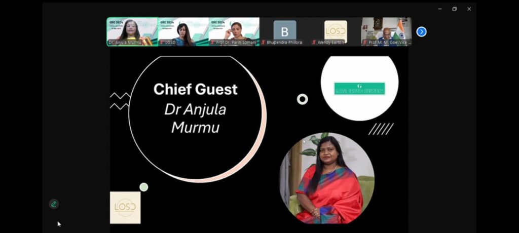 डॉ. मुर्मू 7 अगस्त को यूनाइटेड किंगडम के लंदन ऑर्गनाइजेशन ऑफ स्किल्स डेवलपमेंट (एलओएसडी) द्वारा आयोजित ग्लोबल रिसर्च कॉन्फ्रेंस (जीआरसी) को मुख्य अतिथि के रूप में ऑनलाइन संबोधित कर रही थीं। जीआरसी ज्ञान के आदान-प्रदान और नवाचार के लिए एक अद्वितीय मंच प्रदान करता है। इस वर्ष की थीम ‘बदलती दुनिया में शिक्षा के क्षेत्र में स्थिरता और लचीलापन 2024’ है। इस सम्मेलन में यूके, यूएसए, कनाडा, भारत, तंजानिया, दुबई, चीन, सिंगापुर, जर्मनी, पाकिस्तान, अफ्रीका, हवाई, कजाखस्तान सहित कई देशों के विद्वान भाग ले रहे हैं।